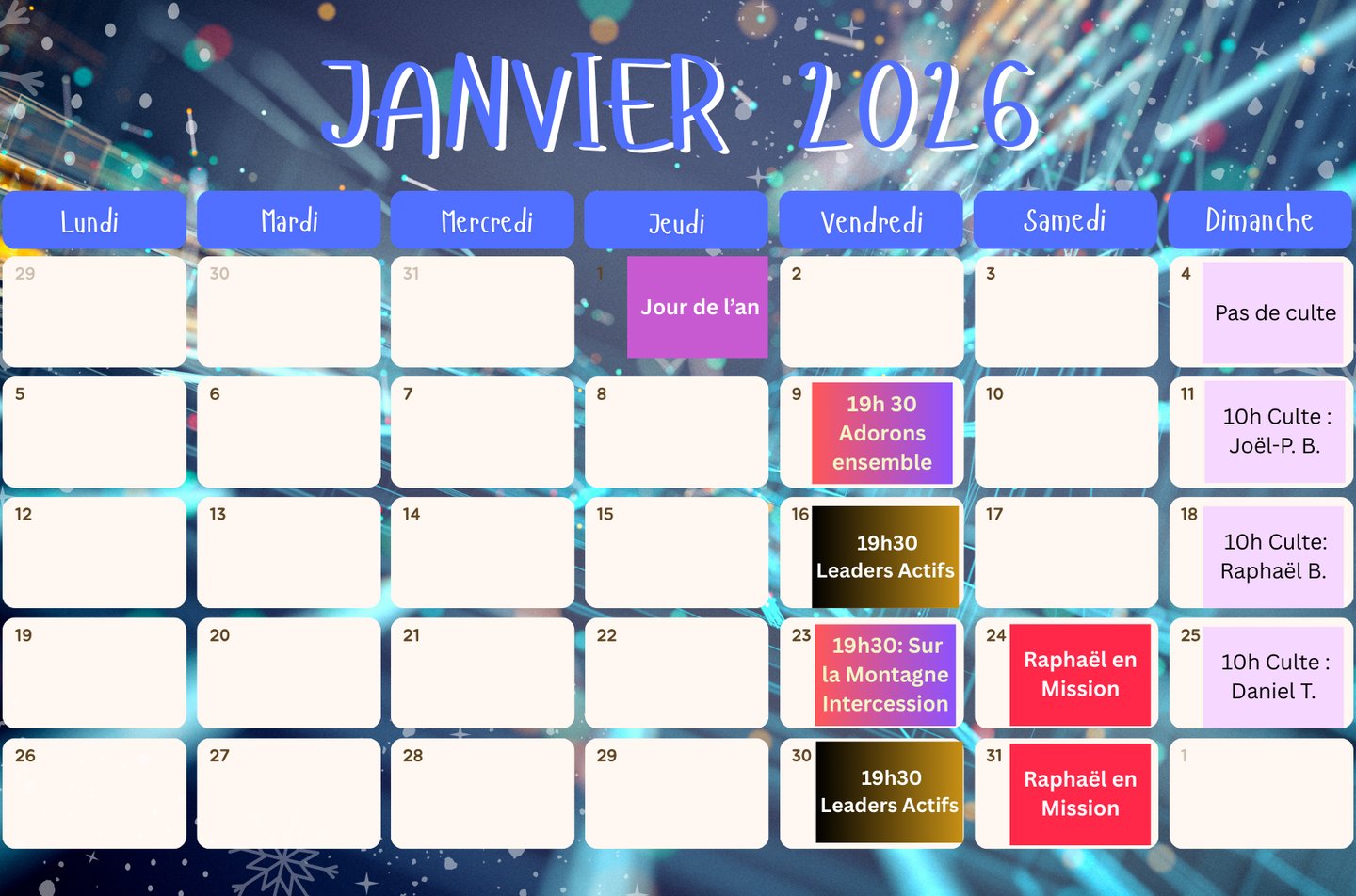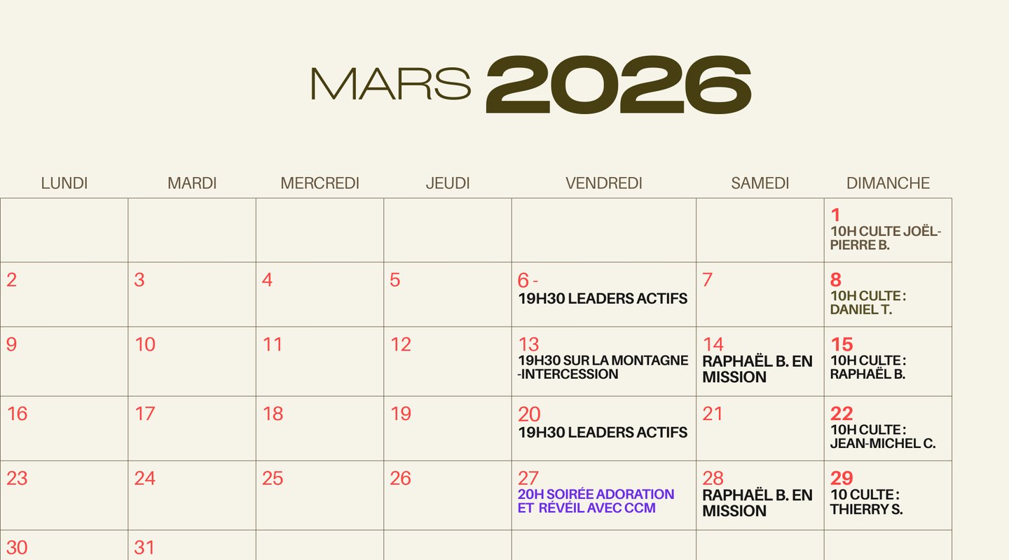 Les cultes ont lieu, en salle, sauf, à quelques rares exceptions, par zoom. À contrario, les temps d'intercession, nommés "sur la montagne des décrets" - pour mettre en évidence l'importance de la prière - se déroulent prioritairement, par zoom. Vous avez besoin d'une information, contactez-nous.